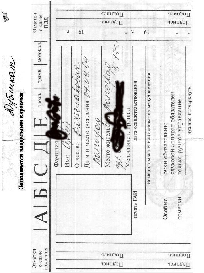 Lord Beaver, Да это я знаю ) TmLAND., Карточку водителя тебе выдают вместе с правами, вот ее теряь внатуре нельзя. Как понять ее не было? у меня она дома лежит и ништяк! так что все окей ) а она как раз обязательна. А то ты подумай - придешь на в мрэо - скажешь а у меня только мед. справка есть - можно написать заяву на восстановление, а они тебе - х"р тебе что можно, где карточка. Откуда они узнают номер прав и что они тебе выдаавались добавлено через 2 минуты А ща посмотрел - эти к"злы у меня забрали почему то карточку водителя (т.е. ее нету) козелы.....наверное когда буду новые права получать (в обмен на времянку) - отдадут