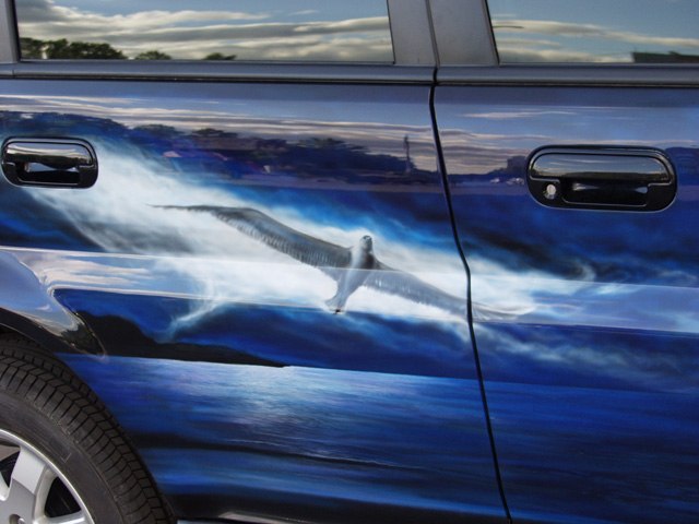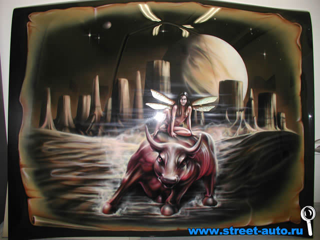 рассказываю: 1) покрасить обычной краской, на неё аэрографию. Не в курсе, какие цены в Воло, сами только это направление у себя открываем, но в Мск - 250 бачей за деталь (дверь, багажник) при том капот и крыша - 2 детали. 2) хамелеон. если есть своя малярка (нашим ок. 30000р. выходит) а так от 50 до 70 тыс. руб. возьмут. 3) плёнка недорого, но 2 года макс, при среднем юзание авто.