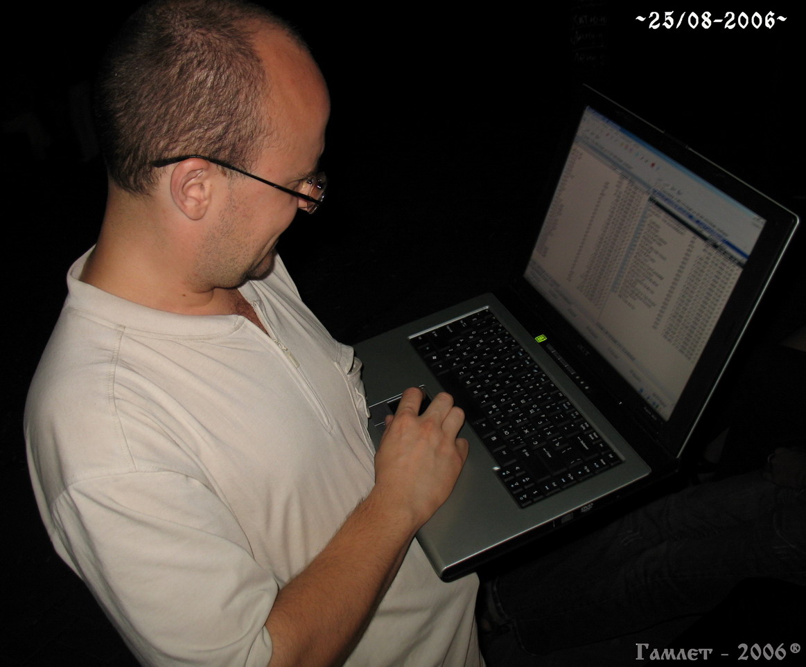 Ivan, Свисни, мож пересечемся. Я тут смотрю Маскфа несколько протухла. Я думал, это я опять выпал из сообщества. Так нет: в разделе Тусы никаких московских тус я за все лето так и не нашел. Надо мобилизовываться, товарищи, а то так и пролежни заработать недолго! Гамлет, Жаль... Ночной Воло это, конечно же, феерия, но если выбирать между различными огнями, то огням ночного Воло я все же предпочел бы огни в глазах Тимонки, когда такие бландынки держат ее за срамные места, ажно сквозь темные очки просвечивает