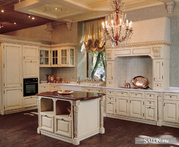 Виктор"Volg", Да... собирают уже третий день... подгоняют, чтобы листок бумаги не проходил. Дотошные ребята. Не знаю... мож в приват? Впрочем, лана... Если со всей техникой, корианом, и пр., то примерно 52000€. Zazell, Всё верно. Наша кухня в винтажном стиле, правда с начинкой блюмоушен (хай-тек). Патина на каштане... пилястры, карнизы... листовое золото, ручная сборка-покраска-подгонка, эксклюзивный дизайн. Серия Белла. На фоте Белла, но мы изменили с художником-дизайнером некоторые элементы, ну и по размеру кухни естественно. У нас нет "островка", ибо 20 метров не позволяют развернуца. Ну, и фик с ним. Да, забыл... гарантию на цвет и прочую фуйню дали 35 лет, при условии правильной эксплуатации, т.е. влажность в помещении от 40 до 60% и короткой( несколько часов) 80%. З.Ы. Обещал Летуальку с Антоном на экскурсию свозить. )