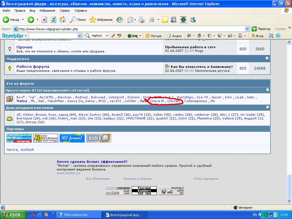 Помогите разобраца с... 07.05.2007 16:37 Taina добавлено через 2 минуты Викторина "Наш... 07.05.2007 16:33 vitalic Кто-нибудь собирается в... 07.05.2007 16:44 ewc Я первый чур...