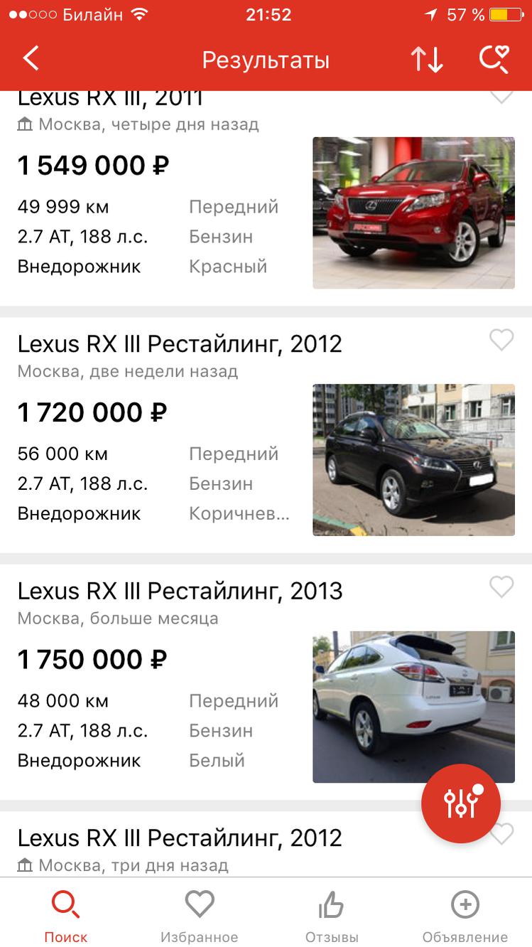 Кстати, купили в семью RX270 пятилетний - оказался очень приятным авто. Думал 188 лошадей будет мало, но нет, едет нормально и в городе и по трассе, если подходить к обгонам и манёврам с умом. До этого к лексусам я достаточно спокойно относился, даже несколько свысока, как иногда свойственно владельцам БМВ но этот так понравился, что думаю как следующий авто взять супруге что-то из Лексусов.
