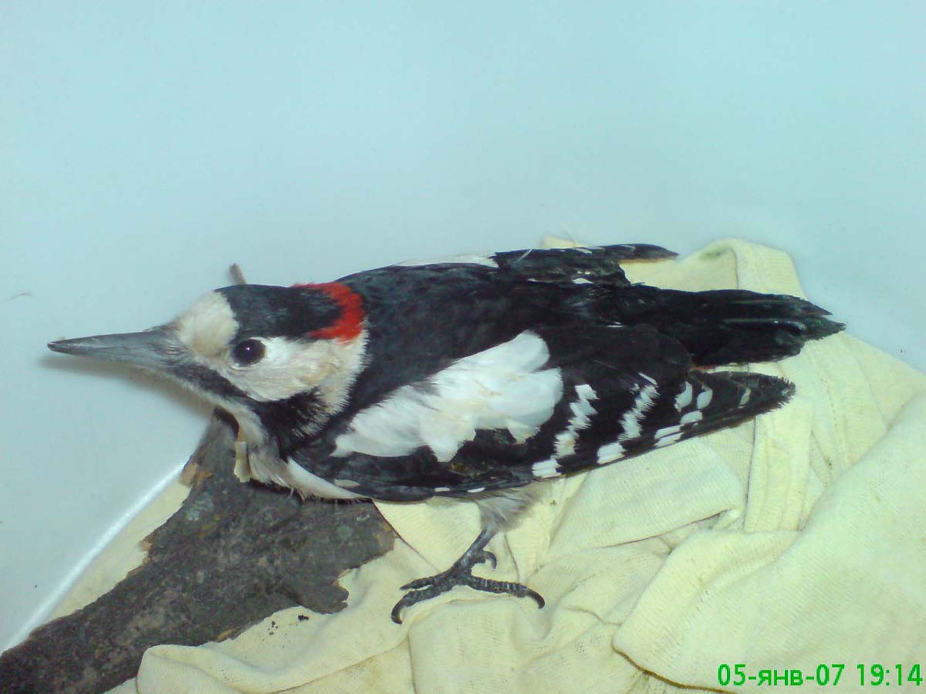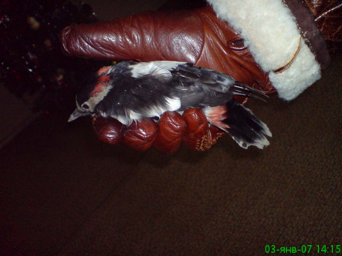 На счет того, что это птенец я и сам сомневаюсь (они летом выводятся), но он меньше чем обычный дятел, я и подумал что это птенец. После изучения литературы, я уверен, что это малый пестрый дятел. Самочувствие его улучшилось, стал бегать по комнате, но летать не может. Причем механических повреждений нет - осматривал ветврач. Почему не летает, пока не ясно. Врач тоже не знает. А про еду, мне тоже сказали, что можно покормить яичным желтком, как кормят цыпленка. Еще вопрос - знает ли кто хорошего специалиста из области птиц (ну там из кружков юнатов или чего -то подобного), хочу проконсультироваться почему не летает. И как часто его нужно кормить? ПолночномуГостю - спасибо за информацию