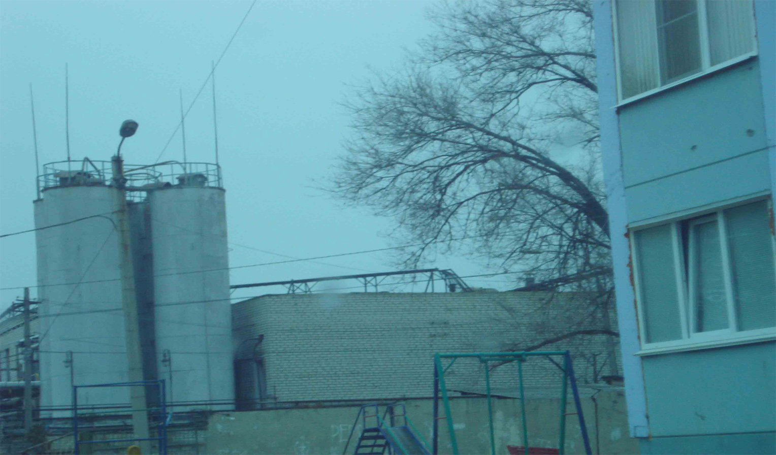 Фото со стороны бассейна Искра (здание на переднем плане находится слева от заводских ворот)