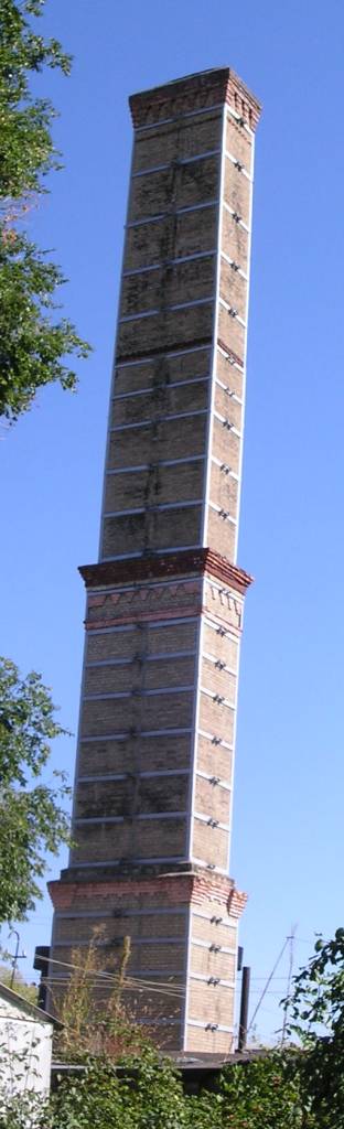 Как едешь на Нижние Баррикады, за хлебозаводом (вроде 4-й), вниз, к Волге поворачиваешь - и как раз примерно с поворота видишь эту трубу. Оно?