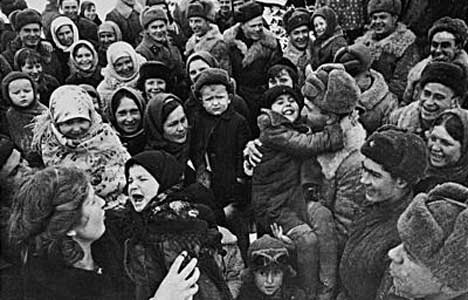 А вот теперь рассмотрим с этой точки зрения противостояние СССР и Германии. Можно ли, сказать, что Германия в 1941 году была ресурсным карликом, а Советский Союз - гигантом? Как уже было сказано выше, нас не должен вводить в заблуждение очевидный территориальный перевес СССР. При ближайшем рассмотрении этот перевес окажется фикцией. В этом смысле со времен наполеоновских войн мало что изменилось. Колоссальные залежи полезных ископаемых Зауралья ещё предстояло разведать, да и те месторождения, которые были уже известны, практически не разрабатывались, тогда ещё не хватало технологий, средств и времени. Даже ресурсы Западной Сибири стали активно использоваться только в шестидесятых годах! А накануне войны почти вся нефть, добываемая в СССР, находилась в кавказском регионе. Далее, как и в 1812 году население СССР почти полностью было сосредоточено в Европейской части. То есть человеческие ресурсы территориально огромного советского востока были крайне незначительны. Аналогично обстояли дела и в промышленности, и в сельском хозяйстве, ведь крупные промышленные и сельскохозяйственные районы за Уралом появились значительно позже 1941 года. Таким образом, территория СССР, эффективная в плане мобилизации ресурсов, оказывается значительно меньше номинальной территории. В 1812 году тысячи квадратных километров вечной мерзлоты и непроходимых болот ничем не могли помочь русскому солдату, но даже спустя 129 лет от них толку не прибавилось. Чем же располагала Германия накануне 1941 года, то есть после побед в Европе? Здесь уместно процитировать Ганса Керля - известного исследователя немецкой экономики: «...Война на Западе (война против Франции и ее союзников. Прим. Д.Зыкина.) резко изменила военно-экономическую обстановку в Германии. Во-первых, значительно улучшилось положение с сырьем. Норвегия, Голландия, Бельгия и главным образом Франция накопили в своих портах за первые семь месяцев войны огромные запасы стратегического сырья: -металлов, горючего, резины, сырья для текстильной промышленности и т. д., которые теперь оказались в руках немцев в качестве военных трофеев. Промышленность этих стран также была хорошо снабжена сырьем и могла выполнять крупные немецкие заказы, не нуждаясь в новом сырье. База производства железа и стали была значительно расширена тем, что угольные шахты, рудники и сталелитейные заводы Голландии, Бельгии, Франции и Польши достались нам почти невредимыми. Германии, таким образом, была предоставлена исключительная возможность развить свою экономику за счет крупнейших промышленных предприятий захваченных стран. Положение с рабочей силой в сельском хозяйстве значительно улучшилось благодаря тому, что сюда было направлено около 1 млн. польских военнопленных, а нехватка рабочих рук в промышленности была компенсирована использованием на немецких заводах французских военнопленных. Количество военнопленных было так велико, что использовать их всех в Германии в то время оказалось невозможным и ненужным, поэтому сотни тысяч голландских и бельгийских военнопленных были отпущены к себе на родину». Фото:Сталинградская битва. Население города радостно встречает освободителей. (Автор фотографии А.Шайхет)
