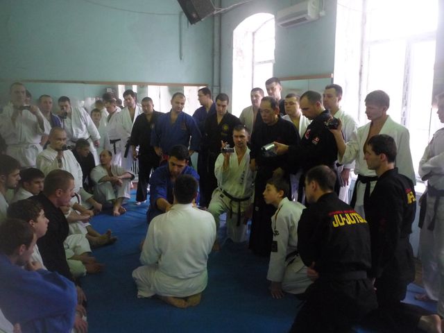Теперь, как проходил семинар..лично для меня он проходил нелегко...работали с Сергеем с Нальчика с начала и до конца)и лично у меня кажется не было ни одной правильно выполненной формы))Но зато теперь многое встало на свои места,многое открылось по новому!И это благодарЯ тому что сенсей подробно нам разъяснял каждую форму (ката),показаны нюансы выведения из равновесия без которого нет джиу-джитсу,тонкости воздействий и работы телом))Таким образом весь второй день я проработал с внутренним огромным удовлетворением тому,что Белоконенко-сенсей меня действительно многому научил и очень мне помог.Главное есть над чем работать и куда стремиться!))