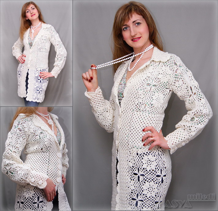 Зато каков результат... Вязание из мотивов это самый настоящий подвиг, даже если это и без отрыва нити. Да еще так удачно подобрать цвета и посадить вещи на фигуру... Супер, просто супер!!! Салфеток море. Какое количество рядов, хотя бы примерно, а то размер салфетки очень сильно от толщины ниток зависит