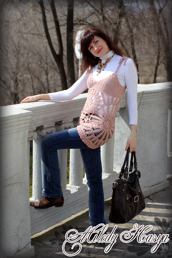Ксюшка красотка. Во всех ты душечка нарядах хороша! В общем руки ни как не дойдут переснять всё. Очень хочется... Много недоделок. начинаю и берусь за другое. Сейчас пересчитала у меня начато 4 летних топа, 1 жителка-медуза (осталось собрать), 1 пальто. В общем раньше за собой такого не наблюдала. И вообще с утра уже уставшая проснулась, авитаминоз полным ходом. Вот вязала на осинке онлайн такой сарафан, хоть на него время нашла, а дальше фсё... В общем пейте витамины! С весной вас, девочки!!!!
