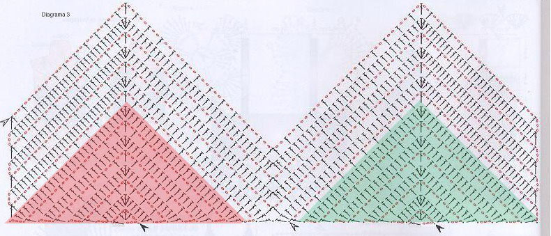 Первая фотка - лицевая сторона. От центра оба края уходят вверх, потом когда начнете вязать от лифа вниз, эти края принудительно в прямую линию выровняются, а треугольник станет выпуклым (т.о. сформируется чашечка). А еще, Марин, попробуй вязать столбики за обе половинки косички столбика с предыдущего ряда. Вторая фотка - изнанка. Внизу "начальный" хвостик заправлен в один из столбиков с накидом. Сверху - две нити завязаны узелком и заправлены в разные стороны вдоль столбиков с накидом. Заправляю ниточки крючком чуть тоньше того, которым вяжу.
