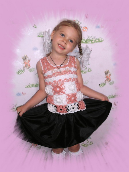 Марина М., спасибо за комплимент и поздравление! tauro, спасибо. Дочка на самом деле ценит мой труд, любит вещи, сотворенные руками мамы и бабушки и, конечно, любит фотографироваться Стараюсь уже в детстве прививать ей чувство идивидуальности. Как посмотришь сейчас на выпускниц школ и даже детских садов: все в дорогущих платьях и все абсолютно одинаковые Становится как-то грустно...
