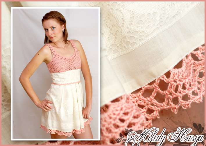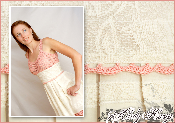 Ну вот, чуть чуть подсобрала свои вязалки. Для моей любимой Анечки было изготовлено такое платье. Платье "Афродита" Бегония 169м /50 гр. - 2 шт., ткань х/б с гепюром Афродита богиня любви и красоты. Существуют две версии происхождения Афродиты: согласно одной - она дочь Зевса и океаниды Дионы; согласно другой, она родилась из крови оскопленного Кроном Урана, которая попала в море и образовала пену. Афродита обладала космическими функциями мощной, пронизывающей весь мир любви. Она всегда в окружении роз, миртов, анемонов, фиалок, нарциссов, лилий и в сопровождении харит, ор и нимф. Афродита прославлялась как дарующая земле изобилие, вершинная "богиня гор", спутница и добрая помощница в плавании "богиня моря", т.е. земля, море и горы объяты силой Афродиты. Она - богиня браков и даже родов, а также "детопитательница". Любовной власти Афродиты подчинены боги и люди.