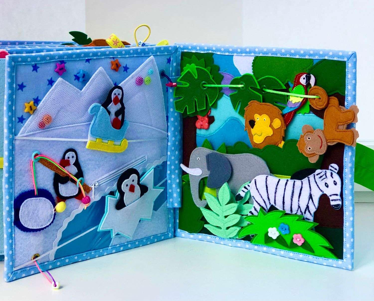 Ой, У нас одна знакомая делает фетровые книги для мелких детей. Полностью из фетра разноцветного. Очень красивые. На каждой странице что-нибудь двигается, открывается, вытаскивается. Специально для развития мелкой моторики. Типа таких.