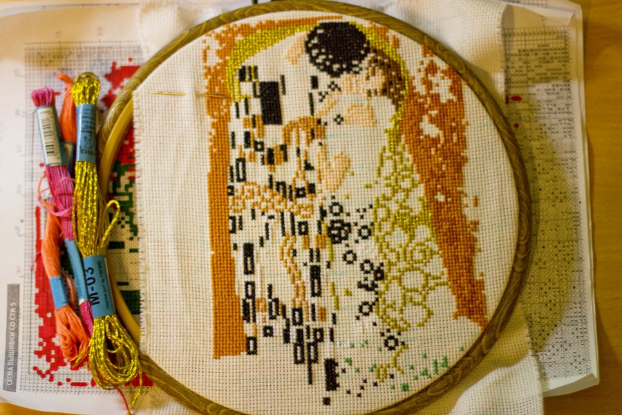 Ашатан, это ты "поцелуй" вышиваешь? а красиво получается, я когда на схему смотрела, что-то не впечатлилась. выложи потом результат Дерево счастья, классные работы мне подарили классную штуку - пяльцы на подставке, удобно вышивать, не надо держать руками. и еще рамку для вышивания, но с ней пока не разобралась
