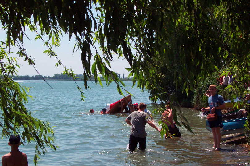 Вытаскивание затонувшего глиссера (хватанул волну на финише)