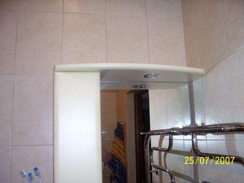 я подсветку зерказа вывел на настенный выключатель, вместе с подсветкой декоративной ниши в стене напротив, две галогенки. Еще будет светильнег с красным плафоном, для интима и в потолке два компактных лиминисцентных светильнега для яркого света, уборки и проч. В будущем все будет заведено в систему умного дома