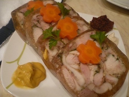 А я еще с одним очень простым, но оченьклассным рецептом Сальтисон из куриных окорочков. Нужно взять килограмм окорочков , срезать все мясо с костей, нарезать на кусочки, добавить специи, те, какие вы любите, чеснок, зелень. Можно добавить перчик, вареную морковку кубиками и прочее, пожеланию. Затем обсыпать мясо желатином - 20г. После этого берете упаковку от сока "Я" или любого другого аналогичной формы и набиваете ее получившейся смесью. Ставите коробку в пакет и потом в кастрюлю с водой. Вода не должна доходить до края пакета сантиметра на два. Варите все час-полтора. Следите за тем, чтобы мясо в пакете из-под сока покрылось полностью мясным соком. Если верхушка мяса торчит, лучше добавить чуть-чуть водички. Когда все сварилось, нужно остудить и подержать в холодильнике ночь, чтобы желе застыло. Потом достаете, режете, выкладываете на блюдо и все