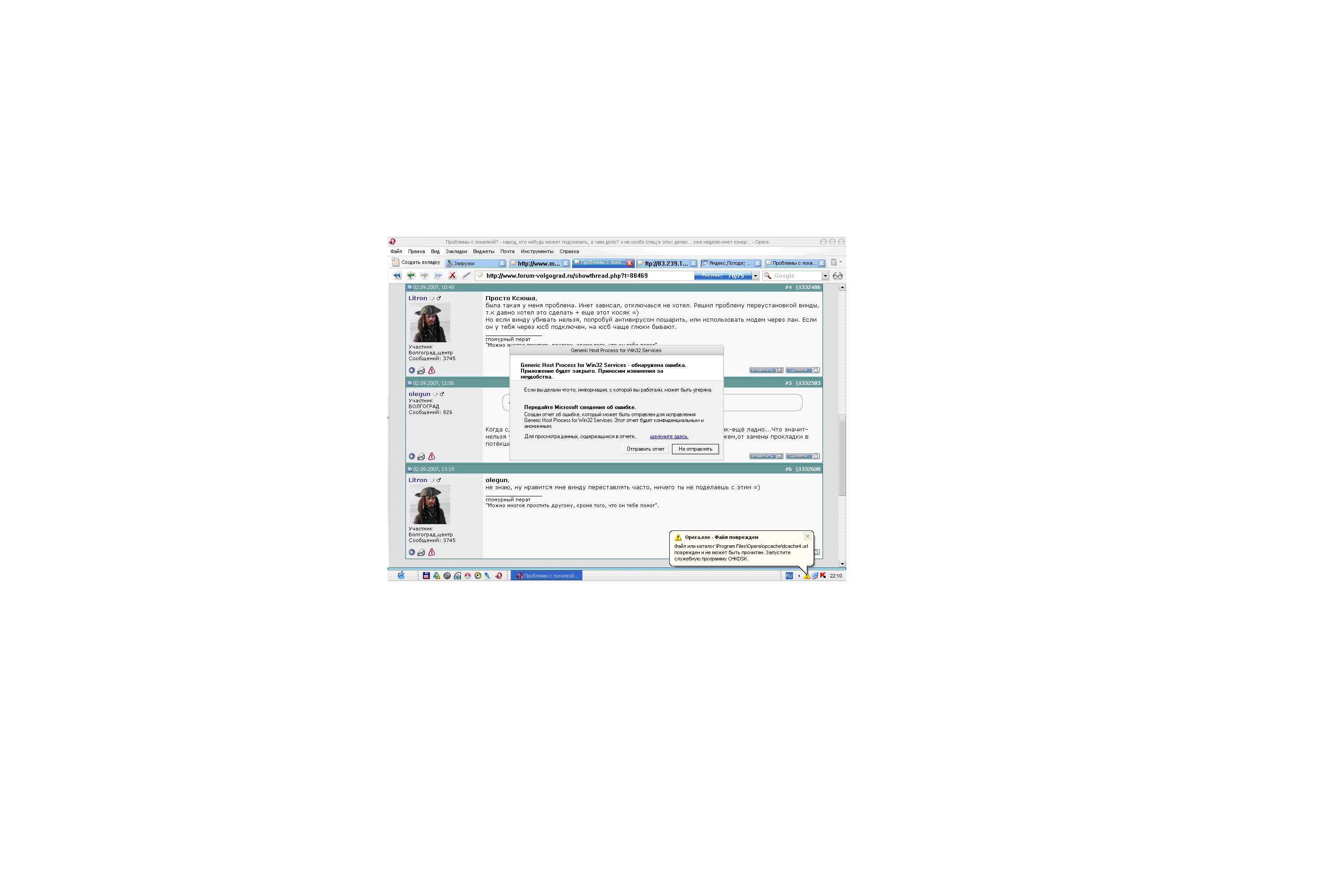 +1, проверила на вирусы все диски (было два, хотя проверяю постоянно), Оперу тоже переустанавливала... результатов не дало. Хотя сегодня все работает без проблем (тьфу-тьфу), посмотрю, что будет дальше... Уж больно не хочется Windows переустанавливать.