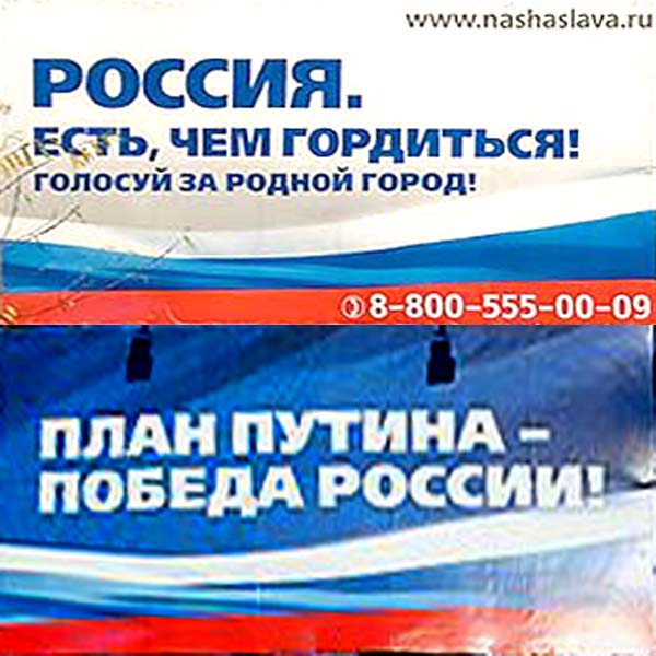 vogt, Видел плакаты ЛДПР. И достаточно много. Это из НЛП. Такую рекламу снимать перед выборами не нужно. И её очень много будет около участков для голосования. Только без логотипа ЕР. Ну а мозг человека сам всё домыслят. Типа, такие ровные дорги вы получите, если за нас проголосуете.
