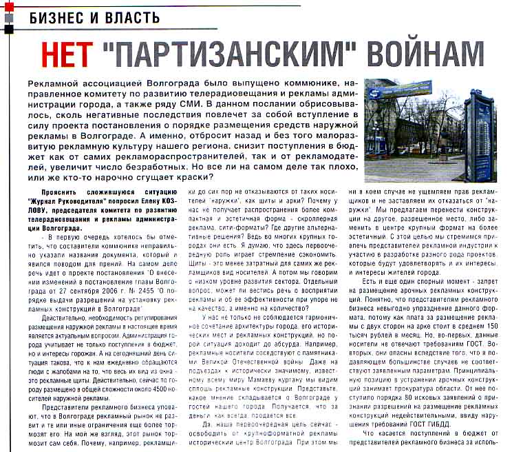 Gallery Предлагаю нашему меру города взять пример с градоначальника Москвы Лужкова, за нарушение правил установки рекламных сооружений просто снести все рекламы без предоставления места. Вот ссылка: http://www.rb.ru/topstory/business/2007/12/14/130800.html