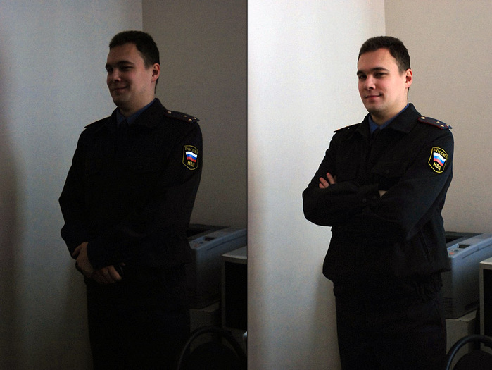 Притащил на работу фотик и оба моих стекла, 50 и 24-120. На тесты так сказать. Помимо прочьего экспромтом решили проверить светосилу стёкол, чтобы сделать наглядный пример. Вот что получилось. Слева - кадр сделанный на объективе с переменными фокусными расстояниями 24-120 мм со светосилой 3,5-5,6. Справа - кадр сделанный на объективе с постоянным фокусным расстоянием 50 мм со светосилой 1,4. Условия сьёмкии установки для каждого кадра одинаковые: - фокусное расстояние 50 мм; - выдержка 1/50 с; - диафрагма 5; - светочувствительность 1000 ISO; - режим М, полностью ручной; - освещение одинаковое. Последующая обработка автокоррекциями в фотошопе для удобства просмотра. Как говорится результат налицо. В одинаковых условиях и установках светосильный объектив рулит нипадецки. Качество оптики, размер отверстия... Жаль что светосильная оптика в большинстве случаев профессиональная, а значит довольно дорогая. эххх... фотка исказилась из-за автоматического ресайза.