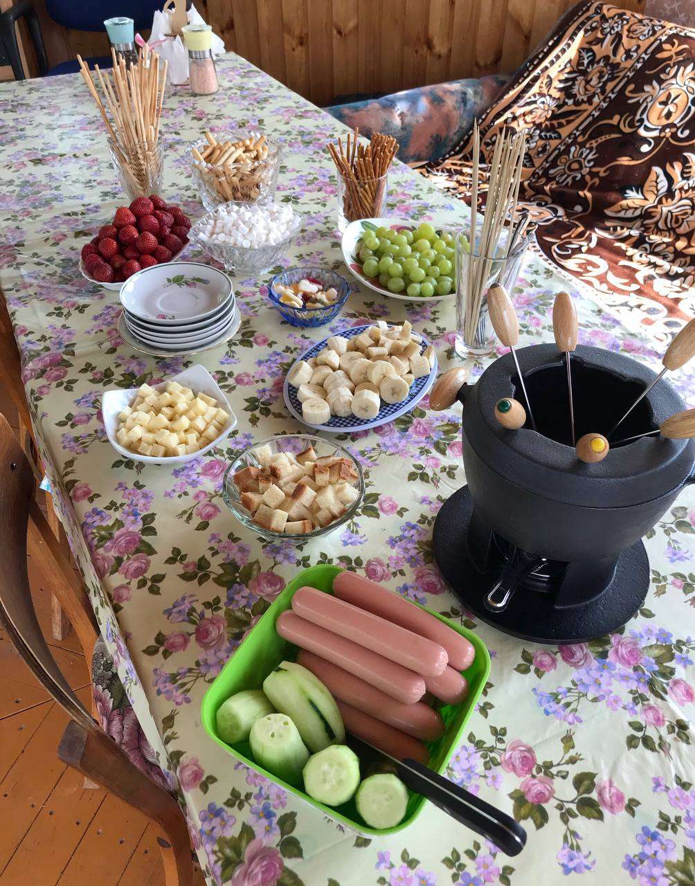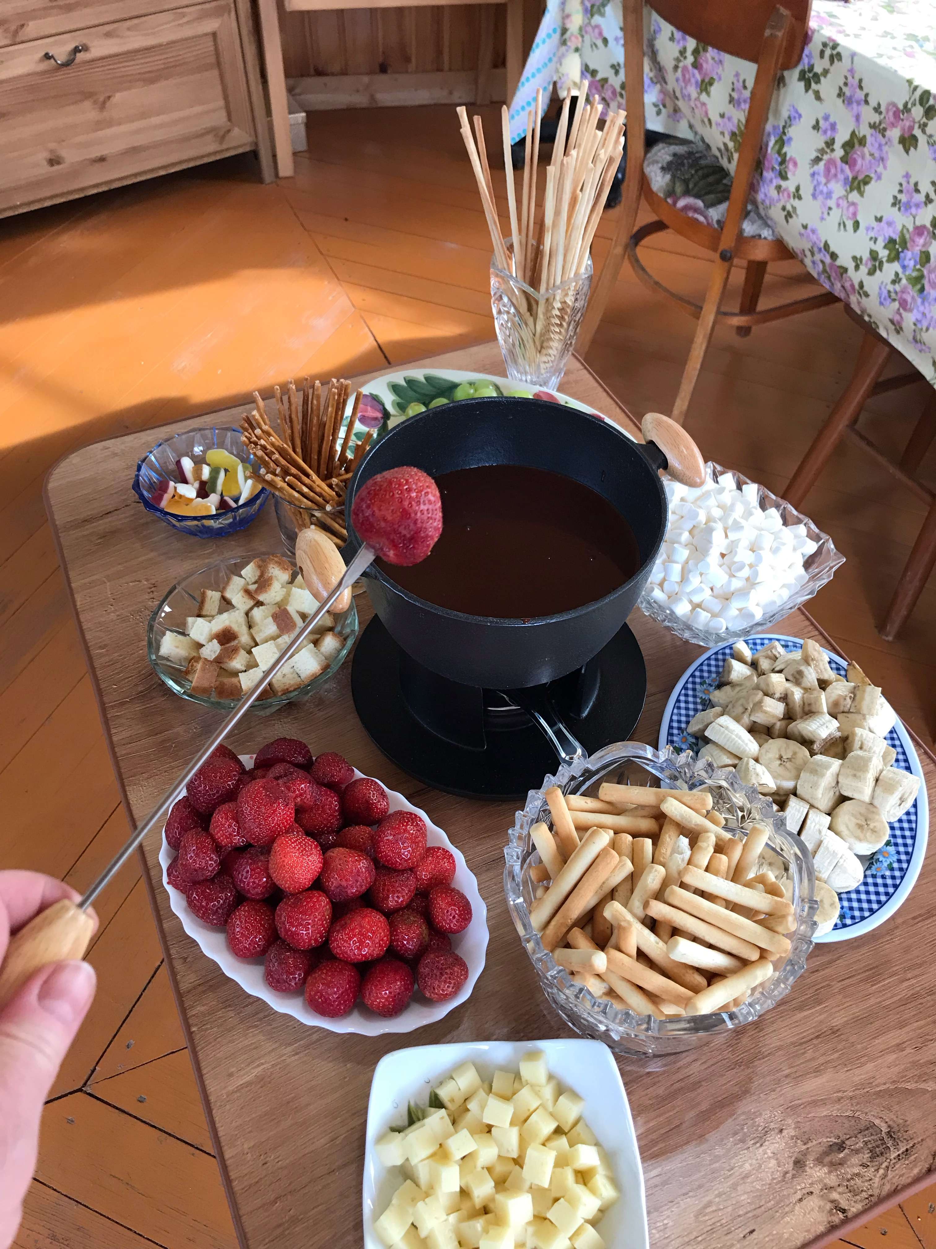 На фонтан опять тратицца. Можно в сырной фондюшнице шоколад разогреть и макать туда кусочки фруктоягод. Сам не делал, т.к. сладкое не очень жалую, но у людей видел. Прикольно.