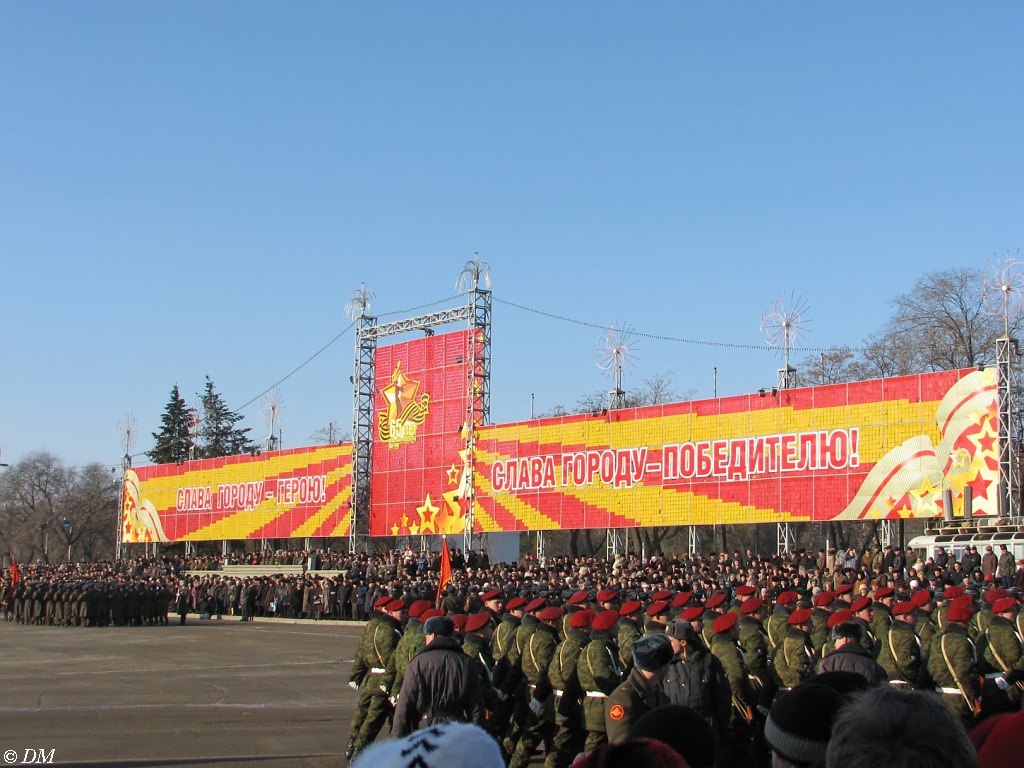 жаль утром на парад не успел, поехал сразу на Мамаев Курган А когда Медведев на Курган приезжал? я вроде там почти до часа был, а оф.церемония вообще в полдвенадцатого была и в енто время его там не было.