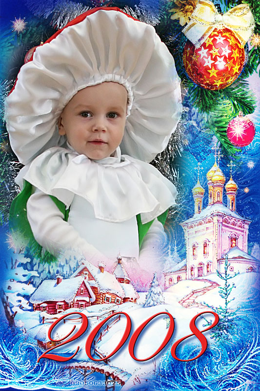 Prof, Молоток! Не скажу что в твоих работах есть супер-пупер художественные вещи, но схитрил и недостатки спрятал. Насчет виньеток, ты имеешь ввиду рамки, потому как о виньетках имеется другое представление? Так вот эти рамки это хорошо, нежели монтажи с костюмами. Родители конечно их берут, но чет я не могу смотреть на них.. ДА кстати я бы снизу еще полписал: НА ПРАВАХ РЕКЛАМЫ. Похоже немного Насчет оператора - забей! Ты не виноват что тот другой не может сделать работу нормально! Либо передай ему мои слова начиная со слов "НЕ ВИНОВАТ"