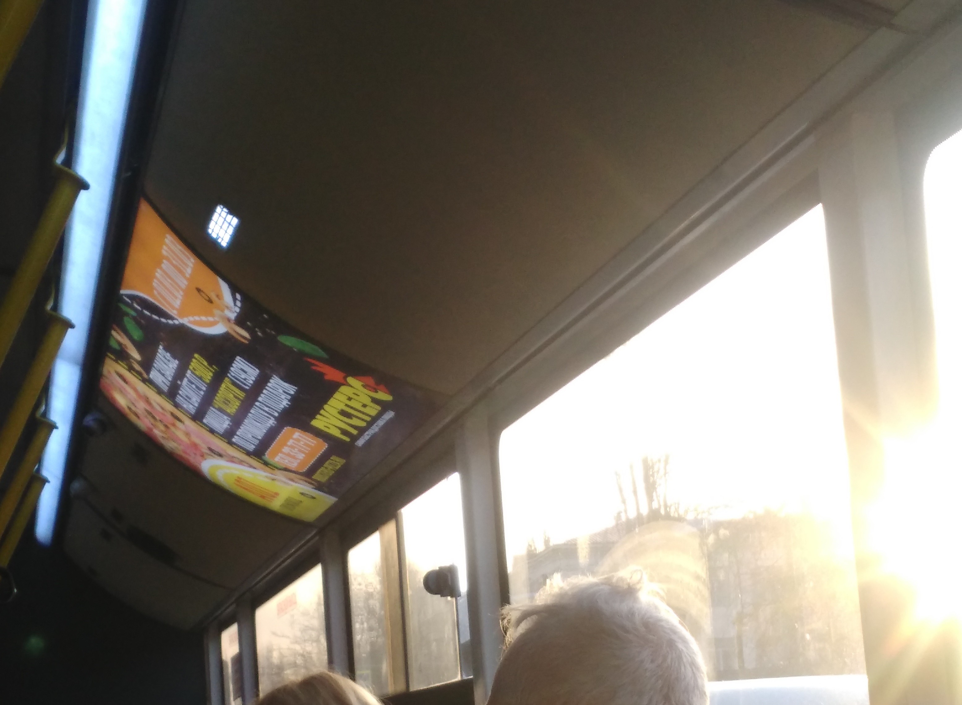 В Волгобасах стали размещать рекламу внутри салона. Верхнюю панель заменяют на прозрачную, изнутри на внутреннюю часть кузова наклеены куски светодиодной ленты (даже не засиликоненной, что хорошо видно сквозь "выхлопную" решетку). Хоть какая-то выгода, раз кондеи всё равно не рабочие.