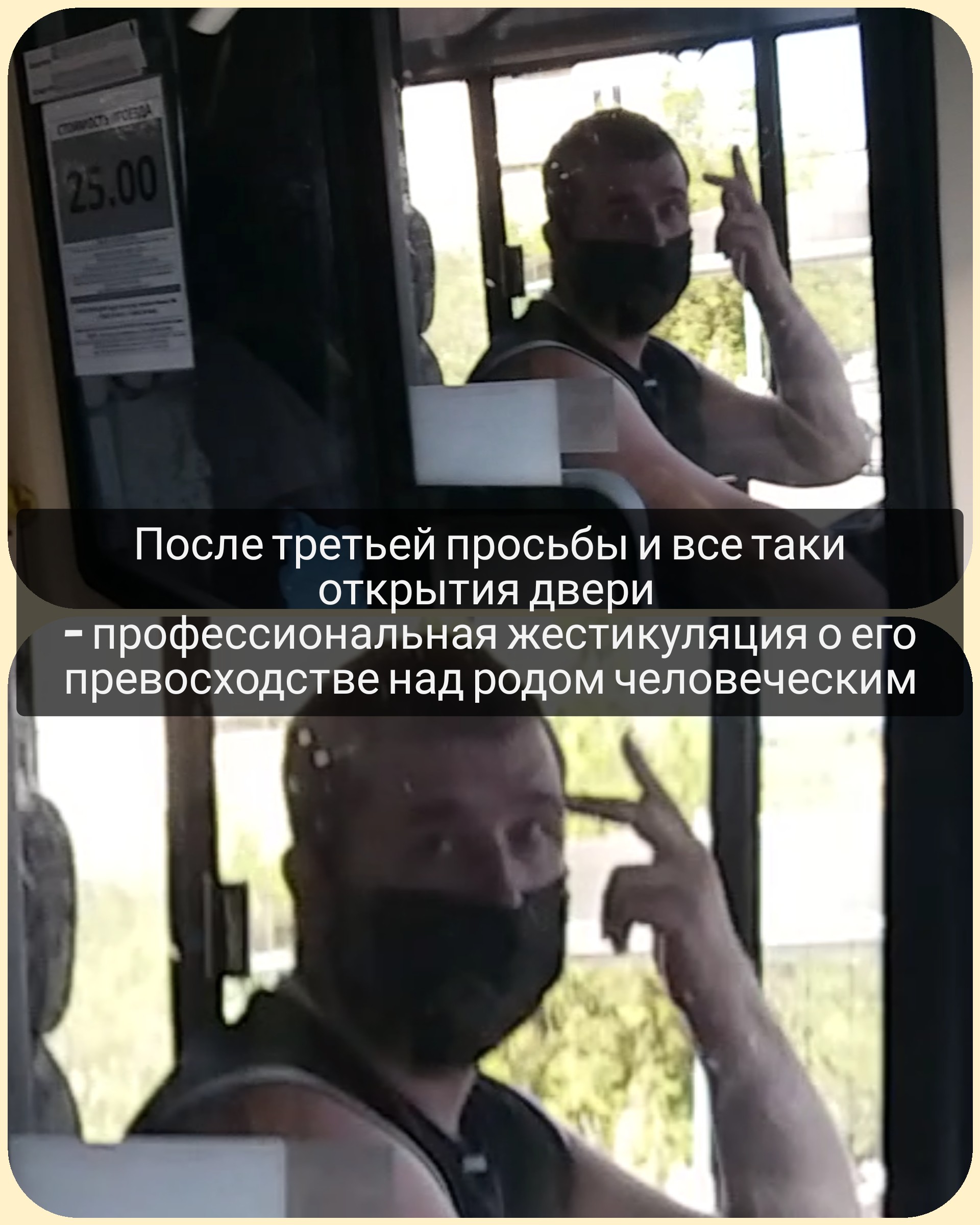 Да там видно всем хватает: - кондукторы часто при полном салоне переходят через улицу спереди назад для обилечивания. Так вот вчера этот водитель не выпустил даже ее, сказав при всем салоне взрослых людей "хрен тебе, так пробирайся". Этож каким гнилым нужно быть, чтоб так унижать своего напарника-кондуктора.