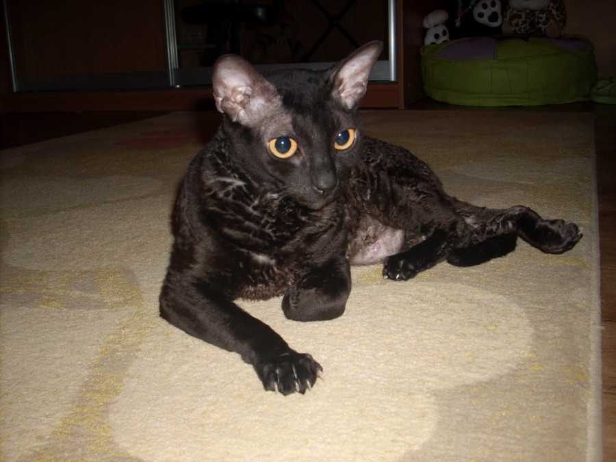 посмотрела сейчас.. кот.. 4 года почти.. помесь шотландской вислоухой и персидской пород..хвост сегодня с утра 2 раза заворачивал против часовой стрелки..