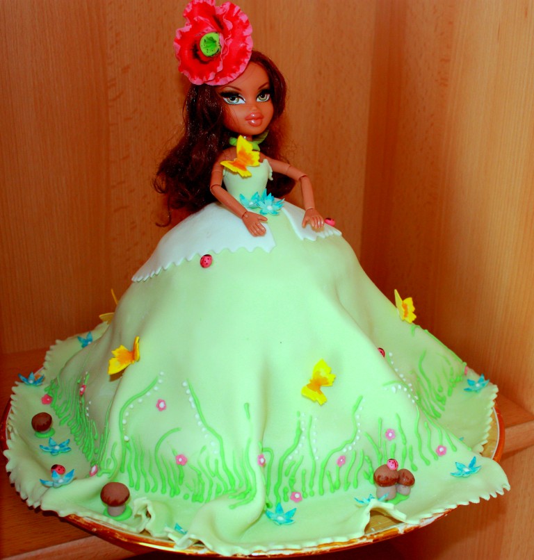 Тортик для Наташи (Корица). Барби-лето. Вес 4 кг. внутри бисквит, припущенные персики и всбитые сливки.