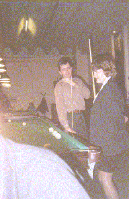 Ох! Как они учат играть! За каждый неправильный удар - кием по ...., ну в общем, сзади кием! А Серега так шариками прям в лобешник целится! Вчера чуть стенку в ДО не проломил!