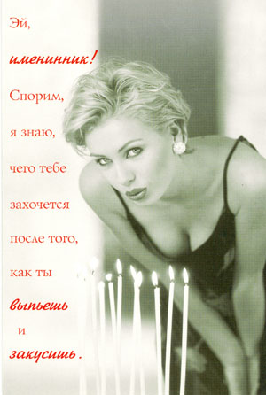 Да, и еще поздравляю остальных сегодняшних именинников с их вырождением на свет, огрымное добродушное пожелание вам ВСЕГО!!! Добавление от [date]1057054770[/date]: Zombie Матохин Роман отрывайтесь от своих компов и идите празднуйте