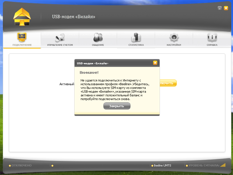 И не получицца с первого раза. И вообще ничего не получицца. ))) У меня та ж фигня была. Модемчик билайновский тормозил все больше и больше. Продала его и купила мегафоновский. Работает без проблем, скорость радует. Билайн - отстой.