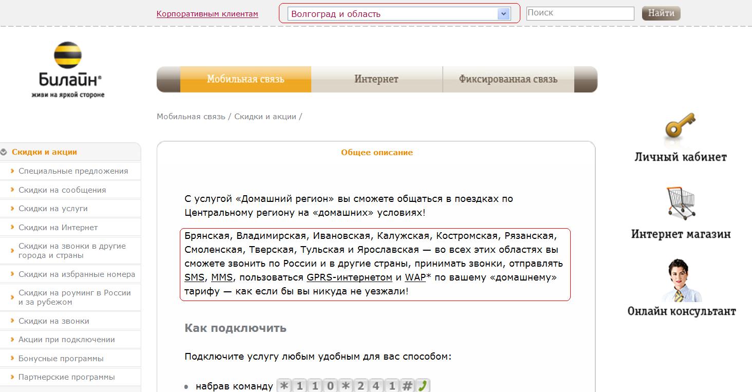Не извиняйся. Это нормальное явление на сайте Билайна. Смотришь услуги для Волгограда, а они оказываются для Нарьян-Мара. Например это: У нас Волгоград разве с Костромской областью граничит? И где мне получить на сайте нормальную информацию о тех областях, которые входят в домашний регион?