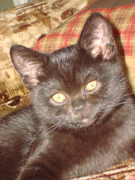 Ёлка))) - я конечно того... но как бы вот на первом фото котёнок шоколадный, а на двух других - чёрная кошка. это явно разные животные. может есть другие фото в мелком возрасте а это просто неудачное? добавлено через 3 минуты А ГЛАЗА ЯРКИЕ, КРАСИВЫЕ!