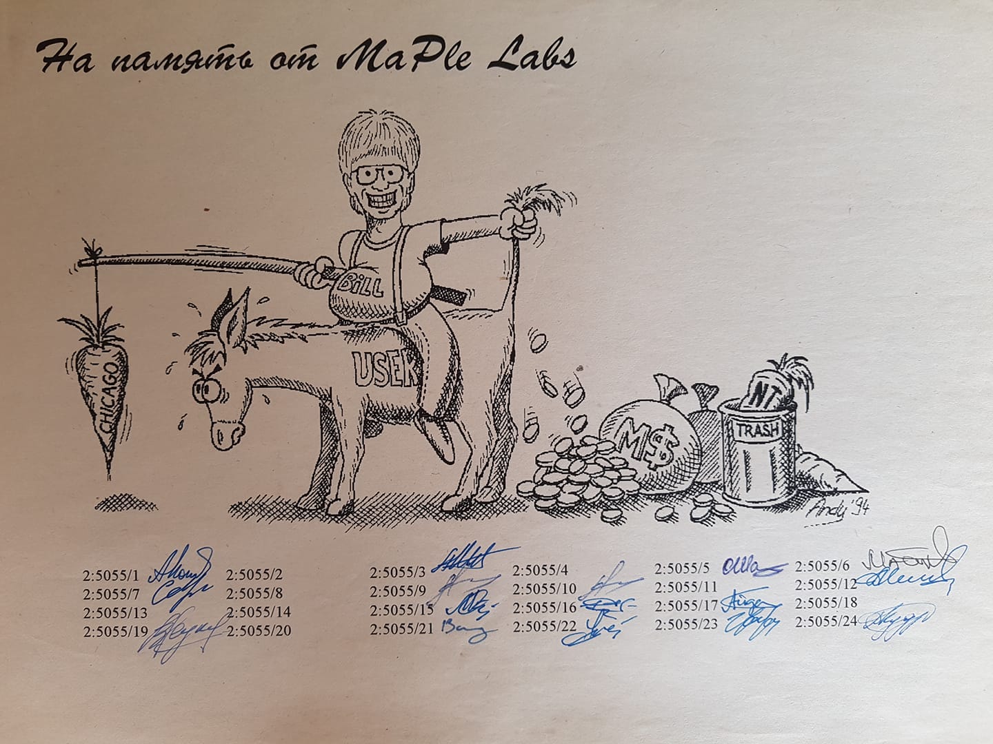 Эх, где-то год 95-96, наверное? Судя по тому, что /9 /21 и /24 уже сообща работодателя на межгород обдираем )) В фейсбуке, кстати, присутствует вот такое произведение искусства