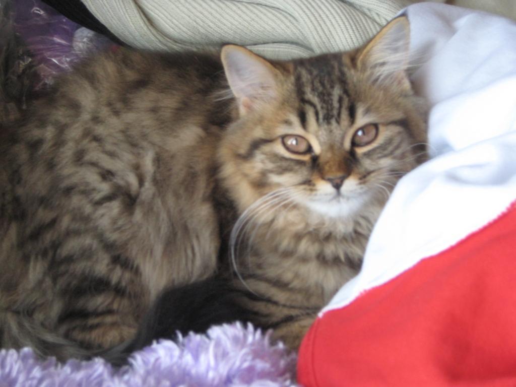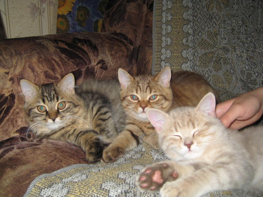 Собсна, животное изображено на первой миниатюре. На остальных - в обществе единоутробных брата и сестры. (В них в силу короткой шерсти быстрее проступили британские черты и потому, хозяев они уже нашли). Специалисты уверили меня, что первичная длинная шерсть у котенка скоро сменится умеренно длинной согласно нормам длиношерстных британцев "хайлэнд". Ежели вопросы - по контактам или в форум. постараюсь ответить быстро.