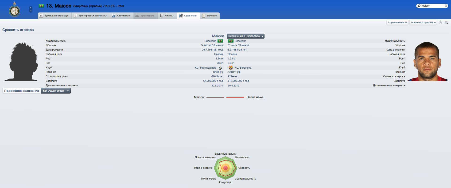 он теперь центральный, да и в атаке Алвес гораздо сильнее я Майкона в этом году не видел ни разу, помню только как в ЛЧ Бэйл его уделал в какашечку