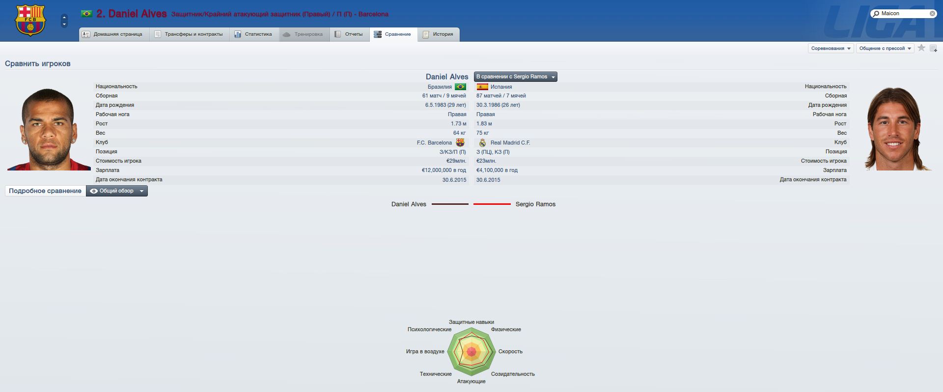 Litron, Это сборная, включая молодежку. Всего 40 у Рамоса и 35 у Алвеса. Разница 3 года в пользу Рамоса, даже учитывая "злого" португальца. Это тоже роль защитника в атаке. Существенная. В год до 5 голов +.