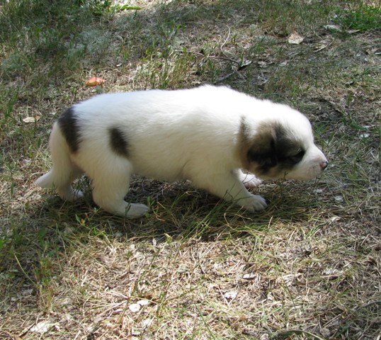 Шли с работы, мимо оврага...Нашли ребёночка. 1. Что за неведома зверушка? Больше ладони, глаза чуть открыл. Недели две малышу. Кобелёк. Может кавказец ? 2. Спасли, принесли, напоили, спит. Что дальше-то делать? Он кроме молока что-нибудь ест уже? Лакать умеет. 3. И главный вопрос: КОМУ НУЖНА ХОРОШАЯ, БОЛЬШАЯ СОБАЧИЩА?