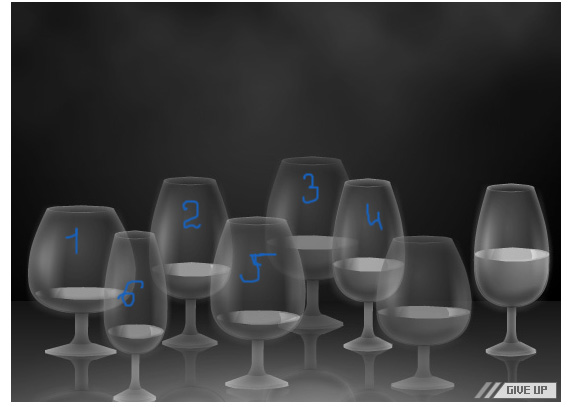 цифрами-номера бокалов--все попорядку как нажимать. 1-1 3-3 4-4 3 5-5 2-2 6-6 1 3-3 5-5 2-2 6 3-3 5-5 2-2 6 1-1 Вроде ошибок нет--проверяла)