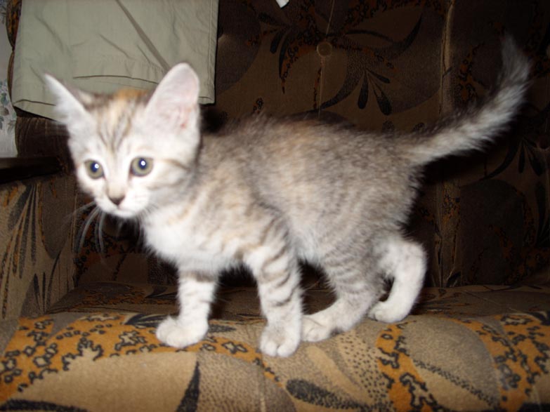 в добрые руки отдается котенок. девочка, тигровый окрас, три цвета (вкрапления рыжего, смотрится красиво), возраст - 1.5 месяца. туалет опознает, когти не точит, обои не дерет. уничтожает практически любую еду. обожает посидеть на руках и помурчать, очень жизнерадостна и подвижна. не шкодит, в моменты отсутствия хозяев в квартире просто спит. фото в комплекте. животное упорно не хотело позировать, потому картинки чуть смазаны 89173311977