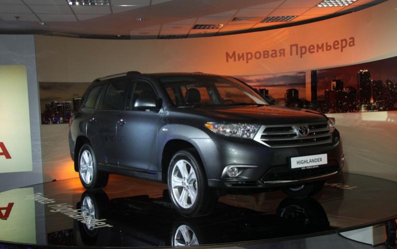 Вчера прошла закрытая презентация Toyota Highlander третьего поколения в России. Движок не гуманный, да и ценник на уровне 5-ти местного дизельного Прадика за "недорожник" "В понедельник, 23 августа, в Москве прошла закрытая презентация полноразмерного кроссовера Toyota Highlander третьего поколения. Мировая премьера этого автомобиля пройдет на Московском автосалоне, а продажи машины начнутся лишь 20 октября текущего года. Цены на новинку, которая будет доступна в России в двух комплектациях, но с одинаковым мотором, будут начинаться от 1 миллиона 757 тысяч рублей. В стандартное оснащение кроссовера Toyota Highlander войдут семь подушек безопасности (включая подушку для защиты коленей водителя), система стабилизации, системы помощи при подъеме в гору и спуска со склона, трехзонный климат-контроль, подогрев передних сидений, датчик дождя, круиз-контроль, система доступа в салон без ключа, MP3-аудиосистема с шестью динамиками и возможностью подключения внешних устройств по Bluetooth и USB, камера заднего вида и сигнализация, а также электропривод двери багажника. В топовой версии дополнительно появится лишь навигационная система на русском языке с семидюймовым цветным дисплеем и жестким диском с возможностью записи на него аудиофайлов. Стоимость машины в этой модификации составит 1 миллион 813 тысяч рублей. Полноприводный семиместный кроссовер Toyota Highlander будет комплектоваться шестицилиндровым бензиновым двигателем объемом 3,5 литра и мощностью 273 лошадиные силы. Мотор станет работать в паре с пятиступенчатой автоматической коробкой передач. По данным производителя, с нуля до "сотни" автомобиль разгоняется за 8,2 секунды, а его максимальная скорость составляет 180 километров в час."