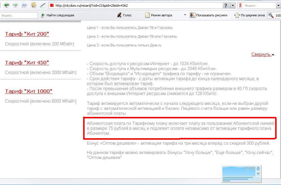 Valek79 Если у вас безлимит или лимит, похрен 75 руб каждый месяц за подержание линии в исправном состоянии. тут http://citydom.ru/wizard/?cid=21&pid=2&tid=4362 p/s там страничка откроется в середине напись(красная) подробнее на нее нажать надо.
