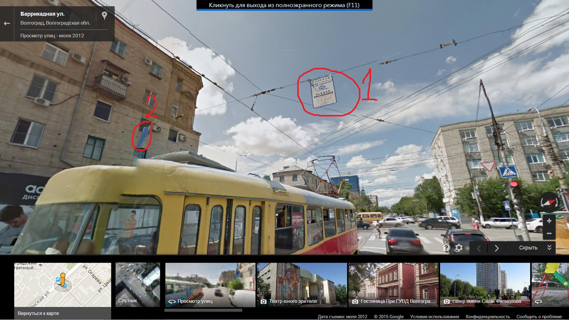Во-первых, трамвайная остановка называется "Улица Рабоче-Крестьянская". Во-вторых, знак трамвайной остановки висит прямо над путями, алло.