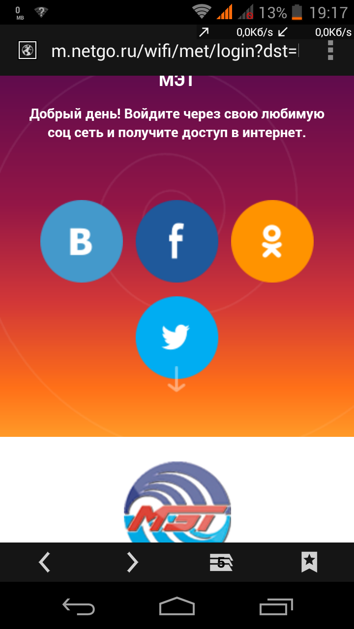 государство вообще должно быть для народа. а у нас наоборот. а про бесплатный Wi-Fi в трамвае уже обсуждали? 1. привязка к соц. сетям - генитальное решение, повод(?) завести себе эту хрень! социнанистам посвящается.. 2. защищенное соединение не работает в браузере. 3. сам инет работает на воздухе ( т.е. не в тоннеле, чай не Москва), работает хорошо. ну и вай фай сигнал стабильный. ЗЫ и ужасно пресный, блеклый плакат-реклама. несмотря на - а гости взамен публикуют рекламу заведения на своей странице в социальной сети а я то думаю чего-то при подключении оно автоматом запросило на странице соц.сети какую-то рань разместить.. ЗЫ теперь вас еще и через вайфай будут мониторить-куда поехал на трамвае, кто..