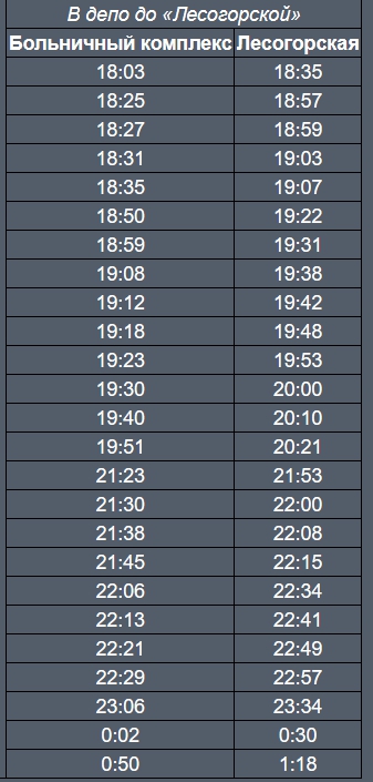 Опубликовано краткое расписание троллейбусного маршрута 15; а также краткое расписание рейсов 15-го троллейбуса из депо и в депо в границах "Лесогорская - Больничный комплекс" на будни.
