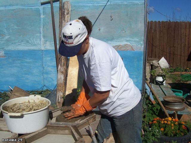 Как-то на одном из строительных форумов (ссылка, к сожалению, не сохранилась) одна дама рассказывала, как она налепила плитки на весь двор...